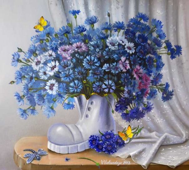 Валентина Валевская — "Башмачок с васильками" — холст, масло