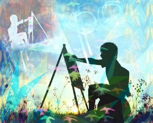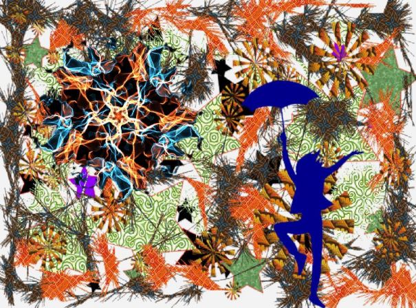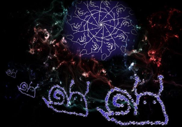 «Межгалактический портал» — цифровой рисунок. «В созвездии Улиток», «Забывшие о времени», «Летние впечатления» — рисунок с коллажированием. Остальное: коллажи с разной обработкой.