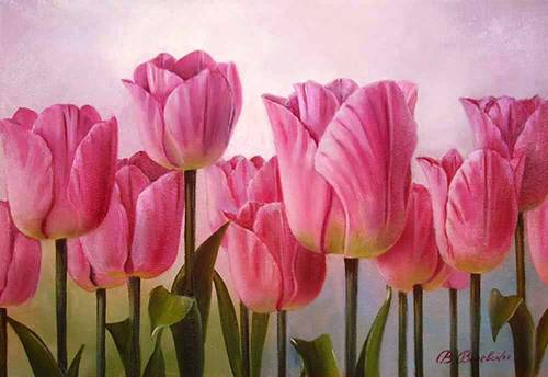 В дни своей молодости хозяйка дома, стоящего на окраине села, разбила вдоль забора грядку, на которой высадила рядок розовых тюльпанов — себе да и людям на радость. Она старательно ухаживала за ними, подкармливала, рассаживала, и тюльпаны с благодарностью разрослись так, что каждый год в конце апреля перед домом колышется целая розовая полянка. Если немного понаблюдать за ними, то создаётся ощущение, что цветы медленно кружатся в каком-то волшебном танце и тихонько поют песню о вечно юной весне. В такие дни хозяйка садится на скамейку и подолгу задумчиво любуется своими питомцами. И хоть годы уже и не те, что прежде, но кажется, что она молодеет — на щеках появляется румянец, а в глазах начинают играть озорные искорки. О чём думает хозяйка? Этого мы не знаем. Но на губах её блуждает лёгкая светлая улыбка, а это значит, что ей хорошо...