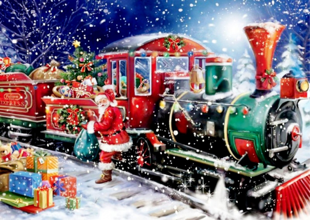 Новогодний экспресс был ещё на месте. В самом центре города, на площади со статуями, старинный паровоз с огромной трубой и вереницей синеньких вагонов был невидим для всех, кроме тех, кто имел право подняться внутрь. Домовые, подъездные, рыночники, транспортники, в одиночку и с семьями, все те, кому пришёл по мышиной почте заветный билетик, уже заняли свои места. Лохматые и гладко причёсанные головы в шапках и без них выглядывали изо всех окошек, знакомые перебрасывались шутками и прибаутками, делились впечатлениями рабочего дня, а кто-то весело напевал новогоднюю песенку. Корней глубоко вздохнул пару раз и, крепко сжав Петину руку, решительно двинулся к высокому представительному начальнику поезда, чья красная фуражка маячила в голове состава. Ох, не согласится, как пить дать! Наругает и прогонит прочь!