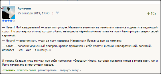 приводим тут скрин замечательной миниатюры о том, как чёрный квадрат придавил самого Малевича.)