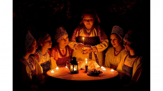 Святки в народе называли святым временем. Этот многодневный праздник делился на две части. С 7 по 14 января, в святые вечера, колядовали и устраивали девичьи гадания, а с 15 по 19 января — тоже веселились на славу, но побаивались страшных вечеров — времени разгула темных сил.