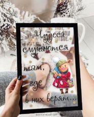 Это очень просто. Сначала делаете рисунок, коллаж или фотографию. Можно сделать поделку и сфотографировать. А потом на вашей картинке через онлайн ресурс делаете поздравительную надпись.