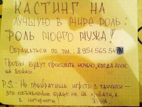Вот вы часто пишете записки своим половинкам? Или детям? Или все это давно заменили смски и дежурные звонки, типа «Хлеба купи!»? Увы… а ведь это отдельный записочный жанр (не в лучших эпистолярных традициях, конечно, но это компенсируется эмоциональной силой вложения)). Вот вам подборка записок, которые могли быть написаны только женщинами. Интересно, о чем могли бы написать только мужчины? Вполне себе сюжет, кстати