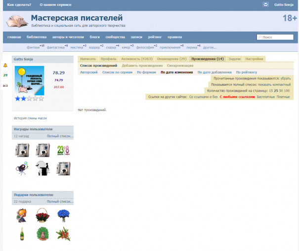 Нажимаю «Добавить произведение», заполняю все обязательные поля. Потом нажимаю «Создать и добавить текст». Поле для заливки появляется, но оно неактивно — ничего туда не копируется. А произведение появляется в списке как «черновик» и без текста, разумеется. Хотя нажимал опцию «готовое произведение».