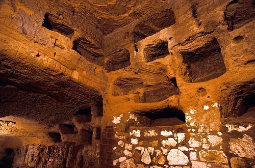 Катакомбы Ком эль-Шукафа находятся на юго-западе Александрии в современном Египте и является арабским переводом древнегреческого названия Lofus Kiramaikos, что означает «холм осколков» или «черепков». Представляет из себя многопрофильный лабиринт из 3-х уровней, внутри которого находятся десятки камер украшенных скульптурными столбами и другими памятниками Римско-египетской культуры, религиозными символами. Являлся некрополем для захоронения умерших еще в языческие времена. Прямо в скальной породе вырублены ниши в которых находятся каменные саркофаги. А также поминальный зал для родственников умершего, украшенный в Римском стиле. Потрясающий памятник архитектуры. Предположительно строительство было начато в 1-2 веке н.э.