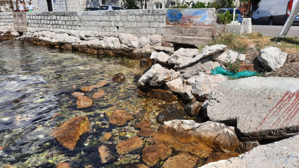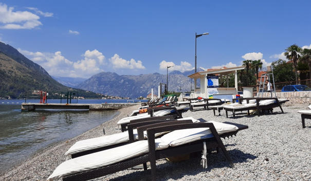 Как таковых пляжей там нет. Бетонный плиты выходят в море. Есть спуски — бетонные ступеньки с этих плит. И люди там действительно лежали на бетонных плитах, потому что по-другому там никак.