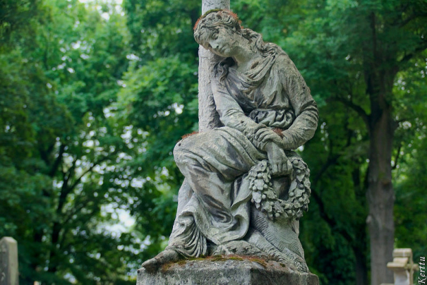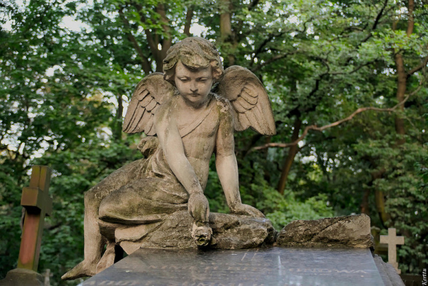 Ну… скажу сразу. Ничего хорошего я не увидела, кладбище как кладбище, типично польское. С трудом нашла нужную калитку с остановки, ноги уже начинали гудеть после вчерашнего торжества прогулок, и я уже хотела свернуть… и разочарованная идти обратно, как попала в другой мир. Дословно. Ничего подобного я не видела, красота неописуемая. Целые аллеи высоких, с мой рост «хотеликов», т.е., семейных склепов, статуи, какие статуи… Густо-густо, так густо, что местами меж ними не пройдешь.