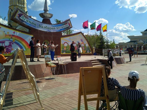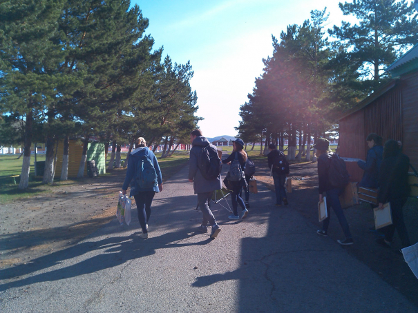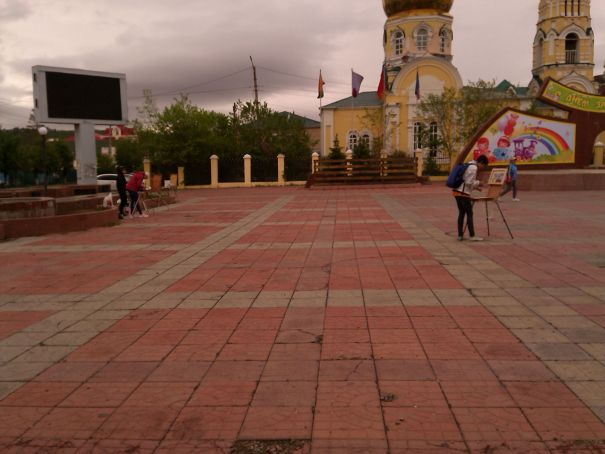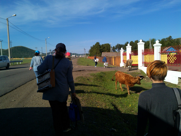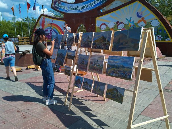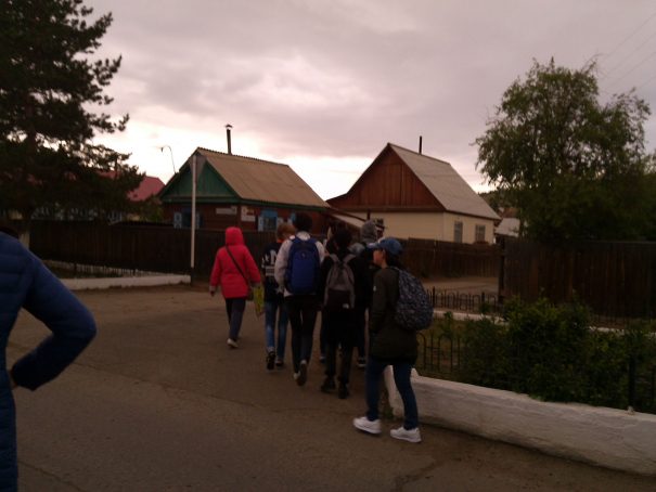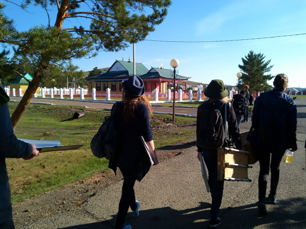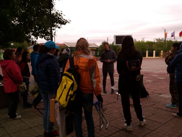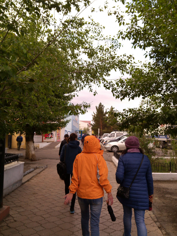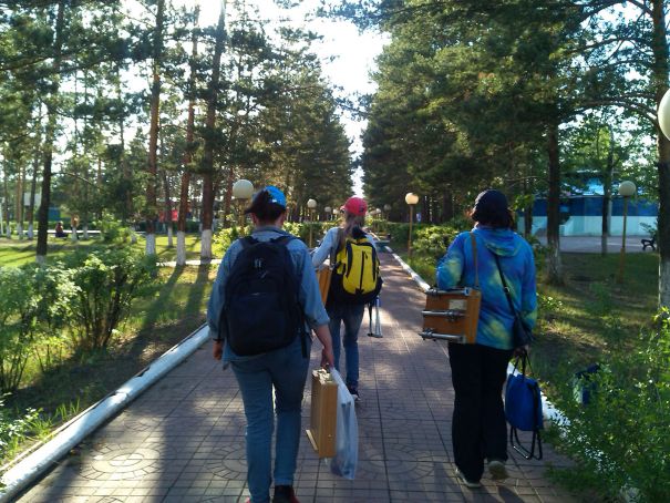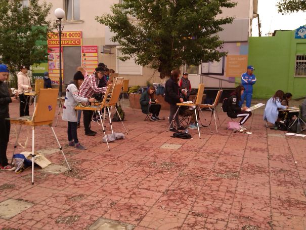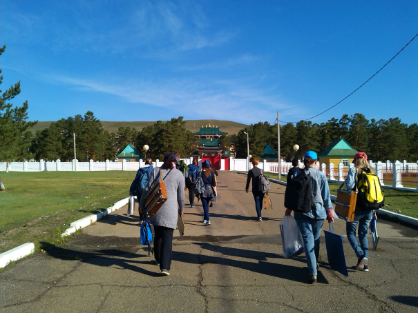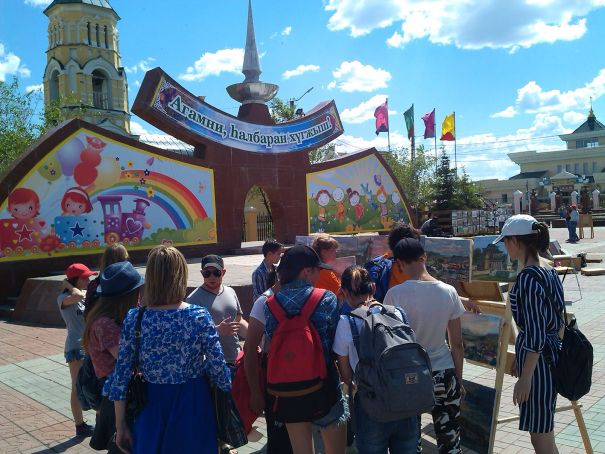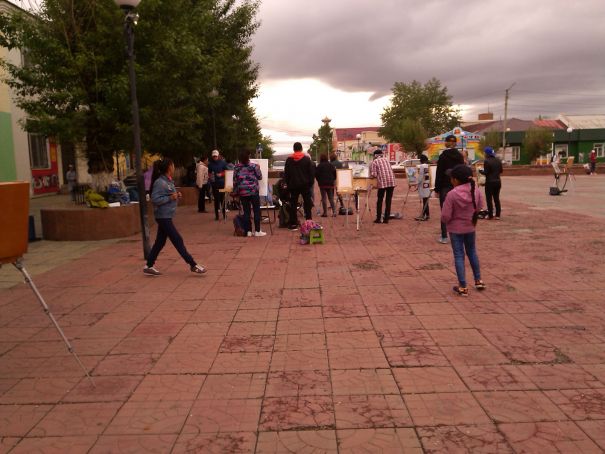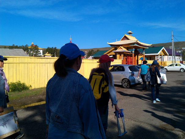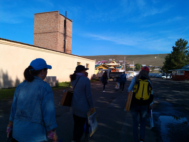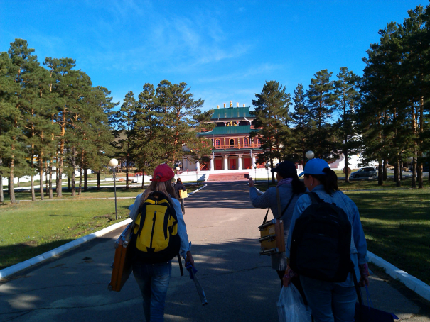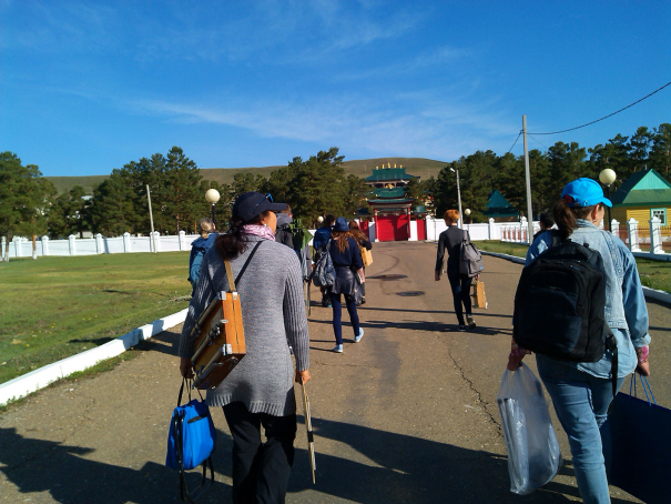 На обратном пути к общежитию повстречали товарищей по пленеру и вместе с ними отправились к местной Детской школе искусств им. К.И. Базарсадаева на церемонию открытия.
