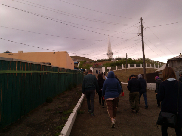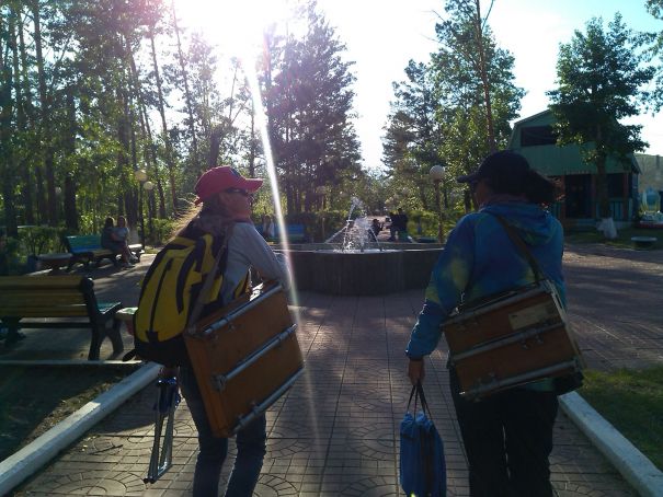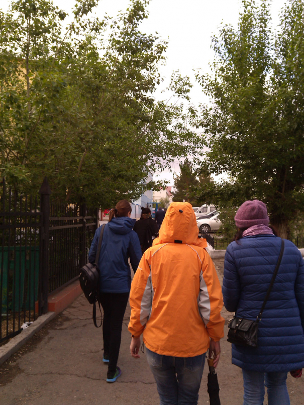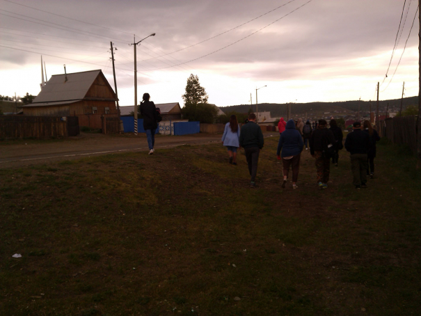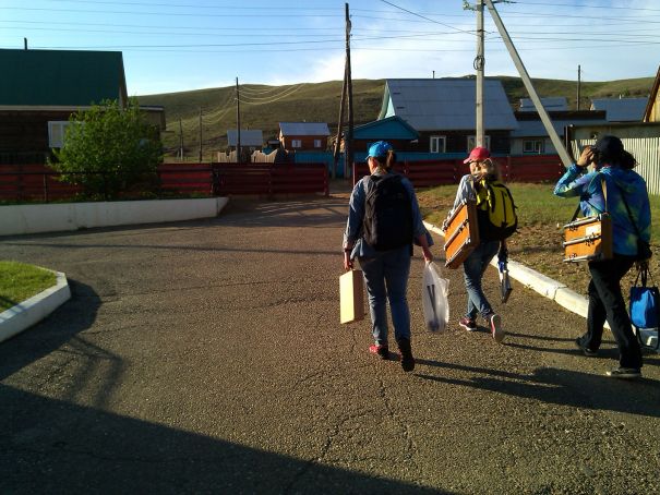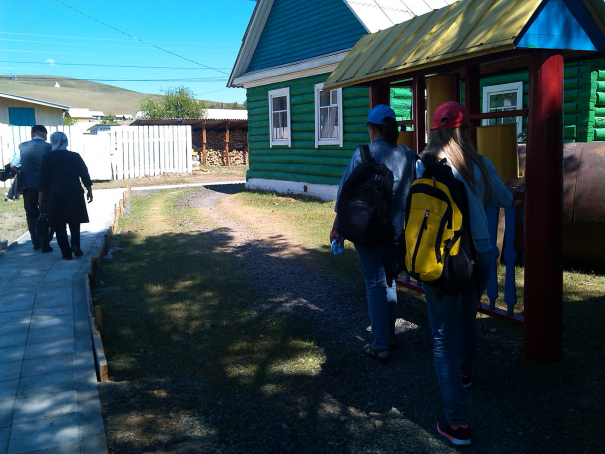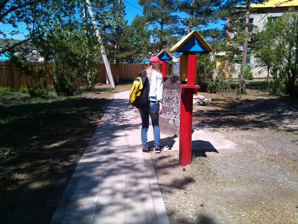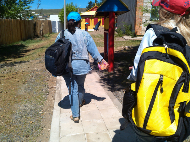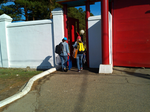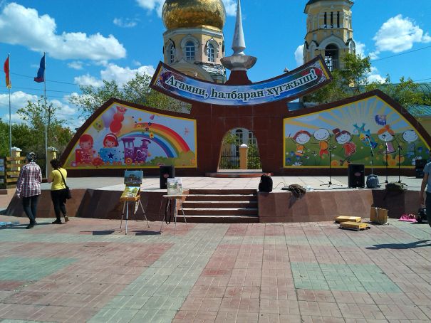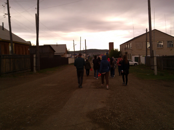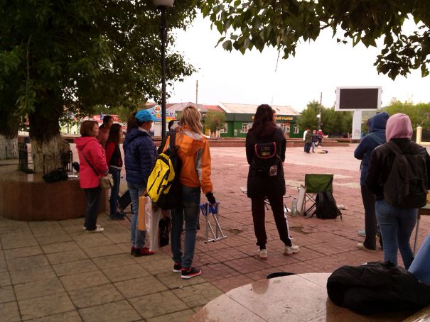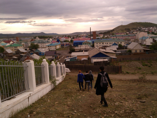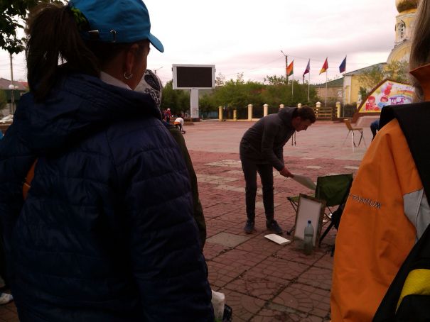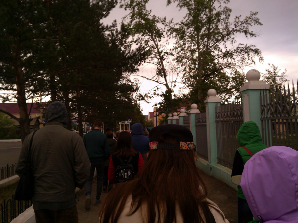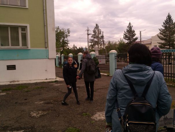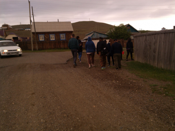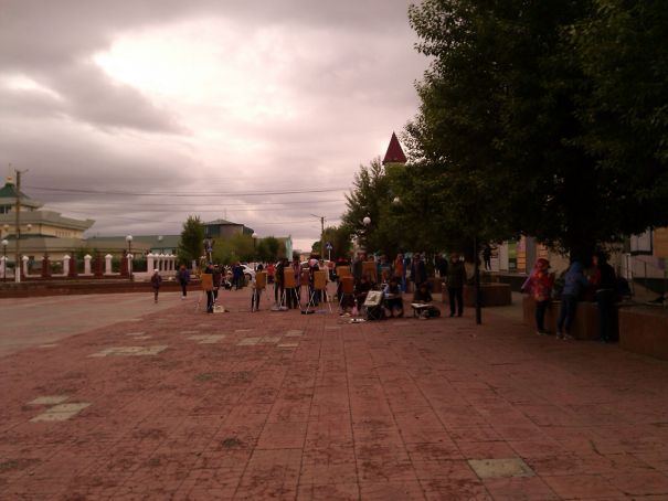 На обратном пути к общежитию повстречали товарищей по пленеру и вместе с ними отправились к местной Детской школе искусств им. К.И. Базарсадаева на церемонию открытия.