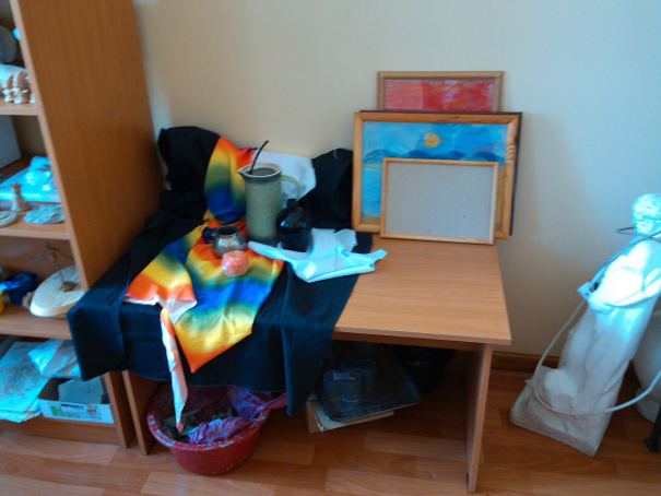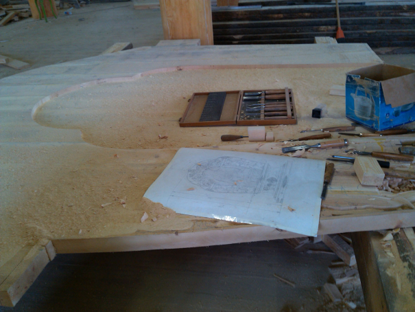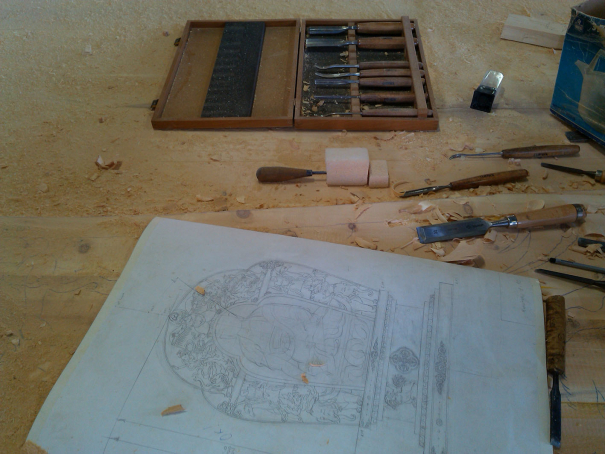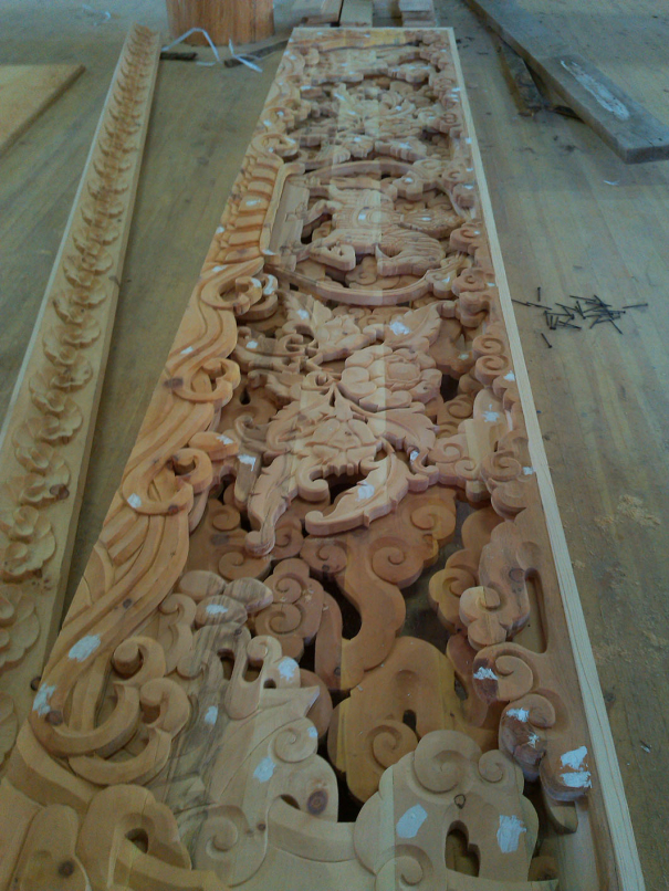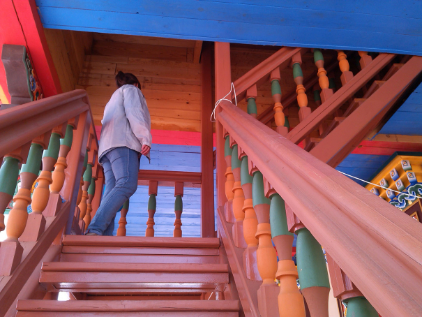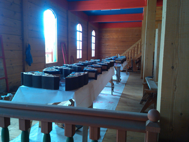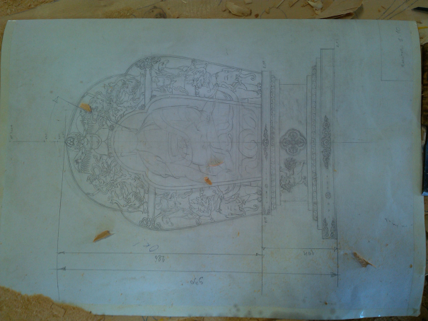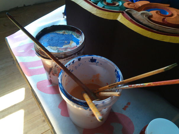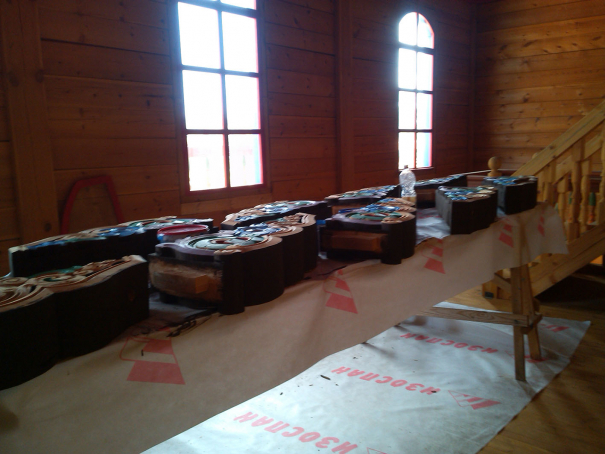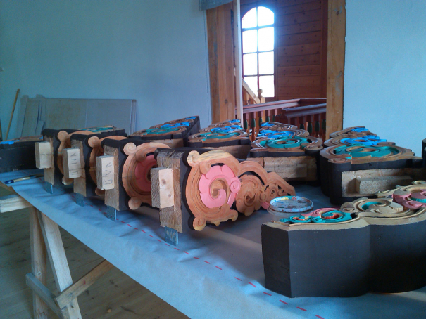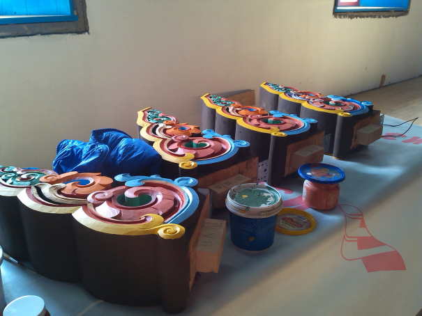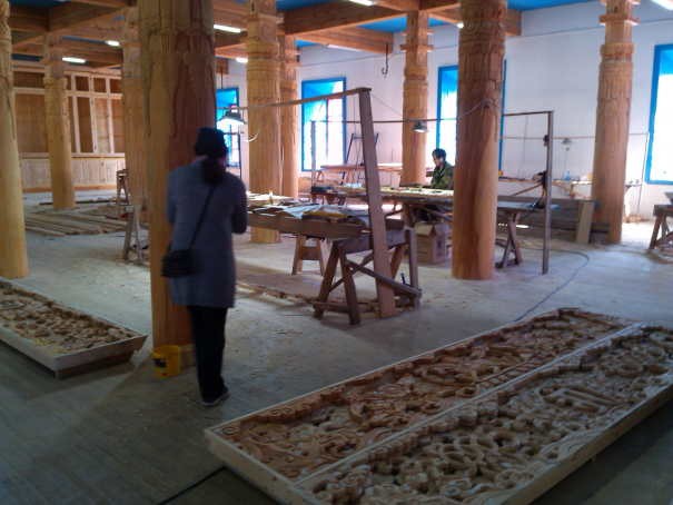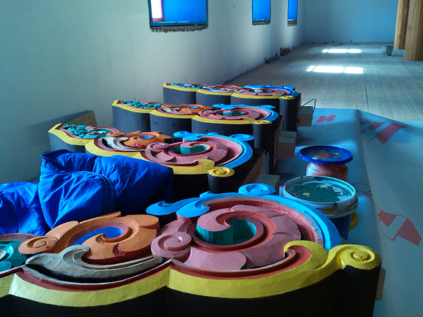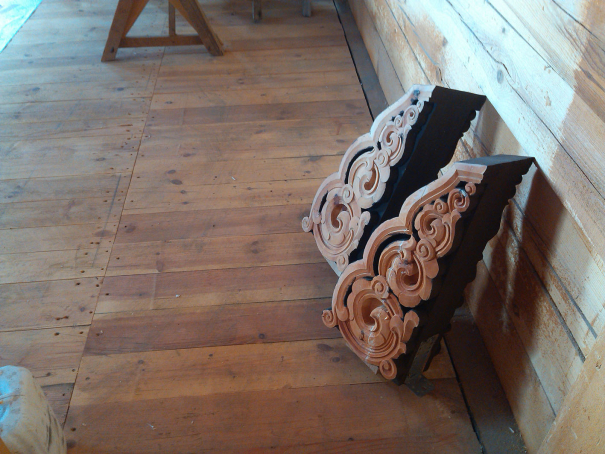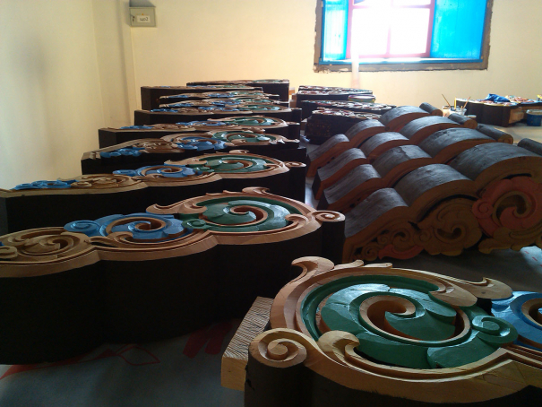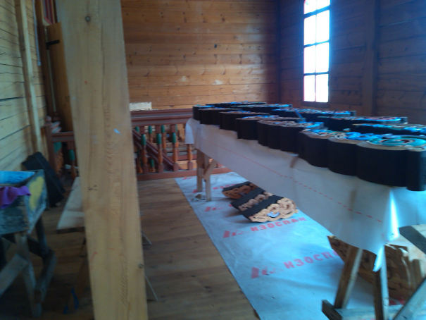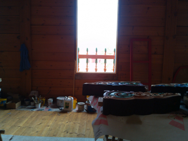 Когда уже уходили, умудрились напроситься зайти на второй этаж Дацана, где художники расписывают резные элементы. Самих художников в тот момент не было, они ушли кушать.
