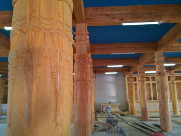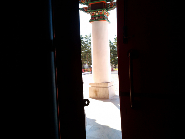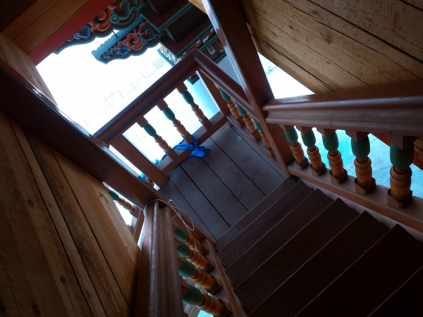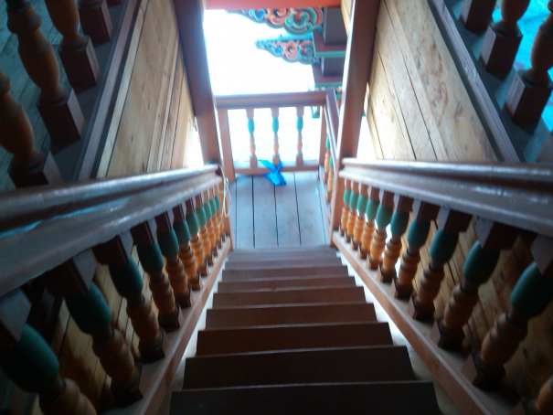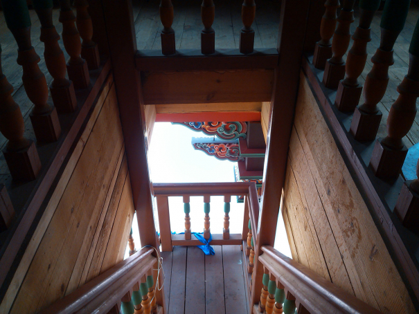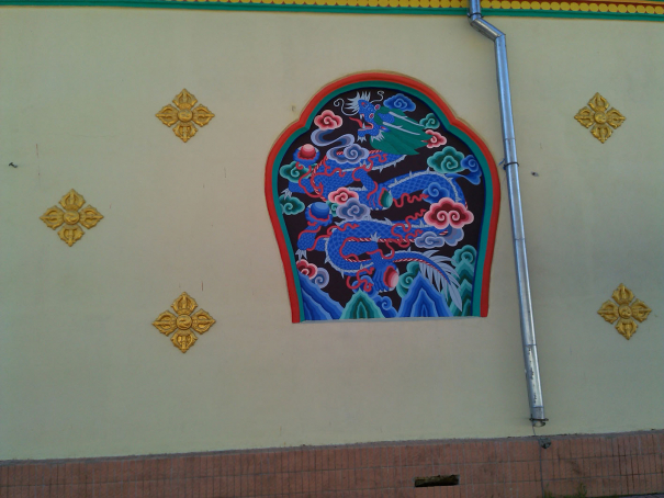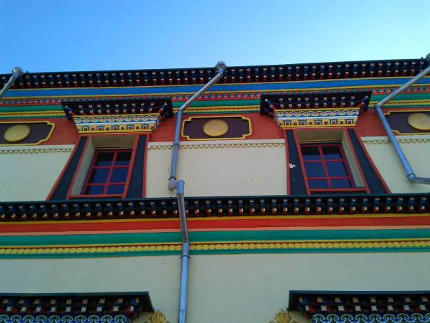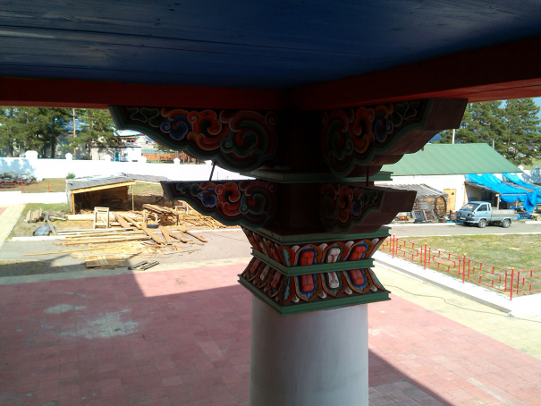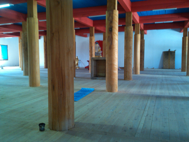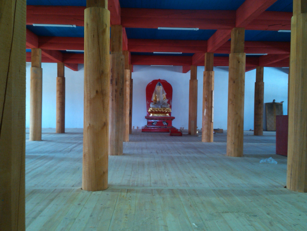 После того, как мы обошли Дацан по кругу (строго по ходу солнца, то есть по часовой стрелке), мы напросились внутрь. Хоть снаружи здание и кажется готовым, внутри все еще идут работы. Несколько лет назад Дацан сгорел, и теперь его тщательно восстанавливают.