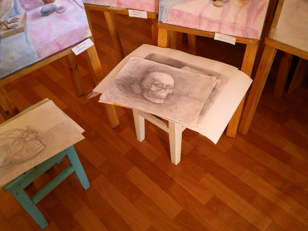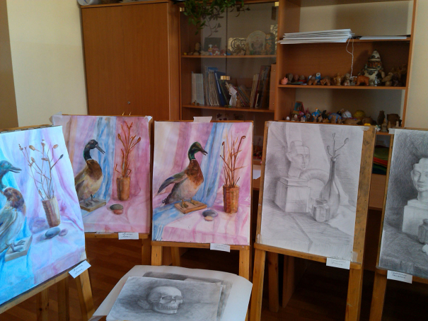 После ставшего уже традиционным второго завтрака отправились к Детской школе искусств на мини-экскурсию по художественному отделению.
