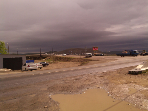Предстоящая дорога встретила нас низкими облаками и проливным дождем. Дождь в дорогу – примета хорошая.