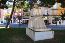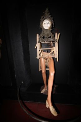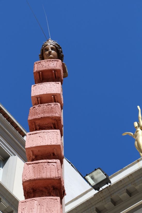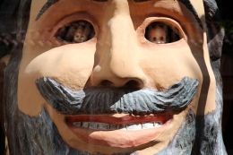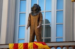 Известный каталонский философ Франсиск Пужольс с телом из оливкового дерева. И Ньютон с продырявленной головой.