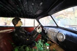 Кадиллак. Если бросить монету, то в кабине начинает идти дождь, а зонт раскрывается над кадиллаком.
