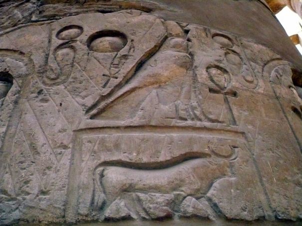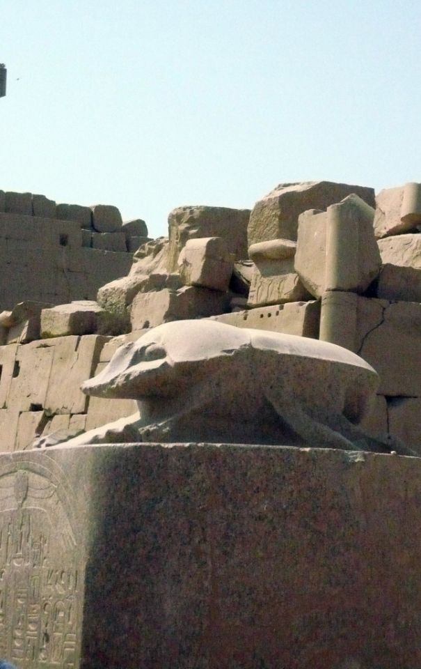 Священное озеро. Оно представляет собой пруд омовения, рядом с которым была установлена колонна, которую венчает огромный жук-скарабей. Стоит отметить, что для древних египтян он был символом благоденствия.