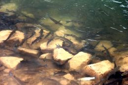 Эбро кишит рыбой. Этот снимок был сделан просто с набережной. Но было течение. Когда же спокойно, то рыбы… ого-го! Что же говорить о дельте реки, где рыбаки с удочками всегда вызывают вопрос – зачем удочки? Если рыба сама тычется в ноги и её можно брать руками.