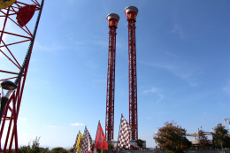 Также есть и аттракцион — Thrill Towers. Это две башни: одна с ускорением, вторая с рикошетом или как ещё говорят – с эффектом поршня двигателя. То есть, с высоты посетители падают вниз, потом снова взмывают вверх, потом снова вниз… как и должен работать поршень.)