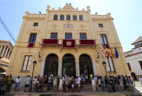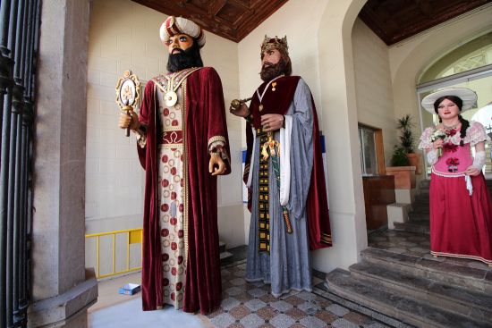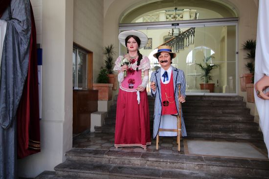 Церковь Святого Варфоломея и Святой Теклы и мэрия с местными гигантами.