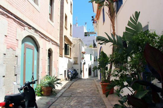 А теперь можно немного прогуляться и по самому городу. Ситжес всегда какой-то очень светлый, радостный, может потому, что дома, в основном, белые. И даже в узких улочках старой части города всегда светло.