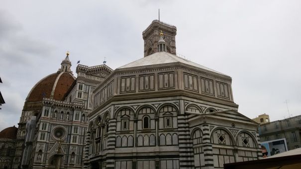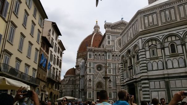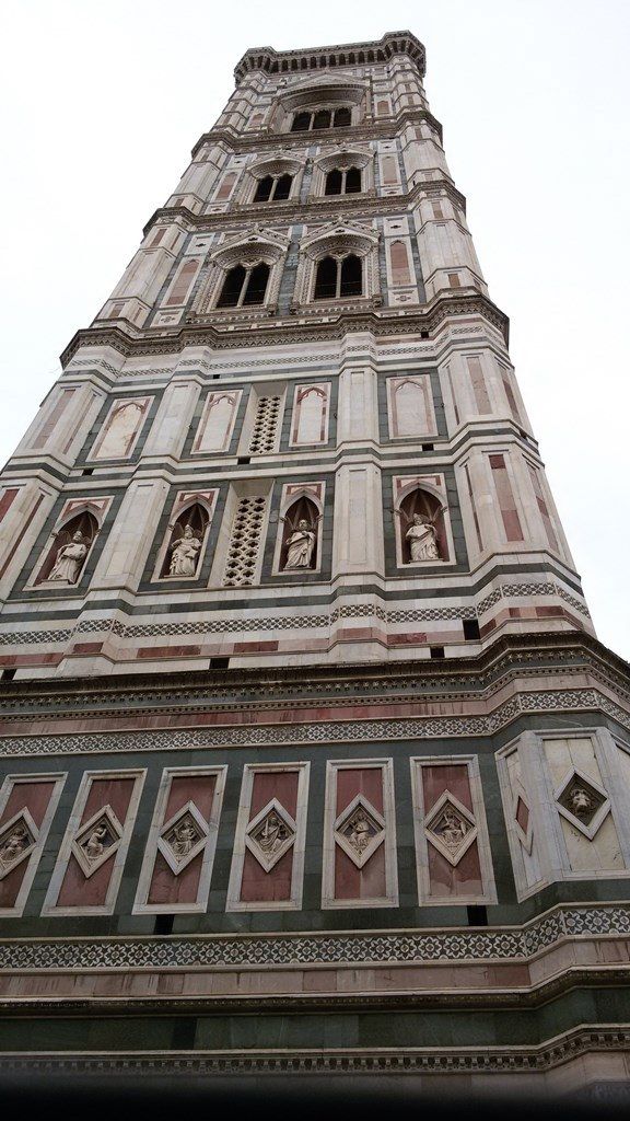 Собор Святой Марии в цветах — Санта-Мария-дель-Фьоре. Строился с 1296 по 1434 годы и на тот момент был самым большим собором в Европе. Да и сейчас он выглядит далеко не маленьким)) Сфотографировать нормально, чтоб нигде ничего не было обрезано все влезло в кадр, проблематично, так как здание о-о-о-очень большое. И даже, когда отходишь до ряда ближайших домов, все равно не получается. Ну, не влазит он в объектив