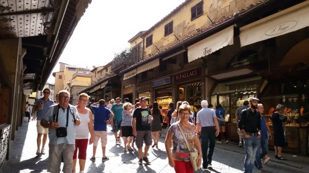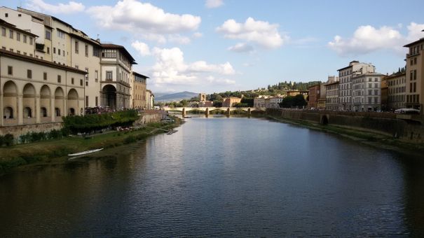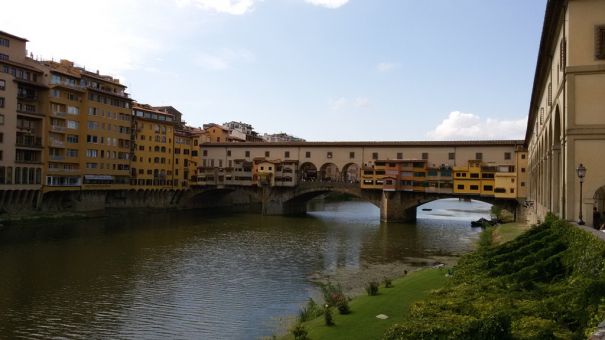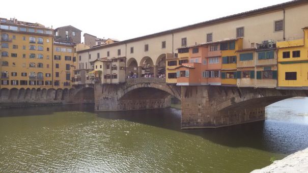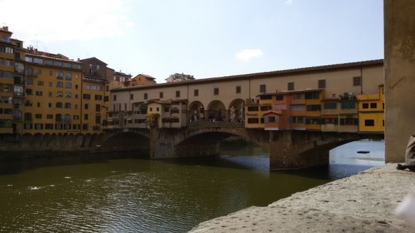 Но сначала мы наткнулись на еще одну достопримечательность — мост Понте Веккьо. Находится он в самом узком месте реки Арно, недалеко от галереи Уффици.