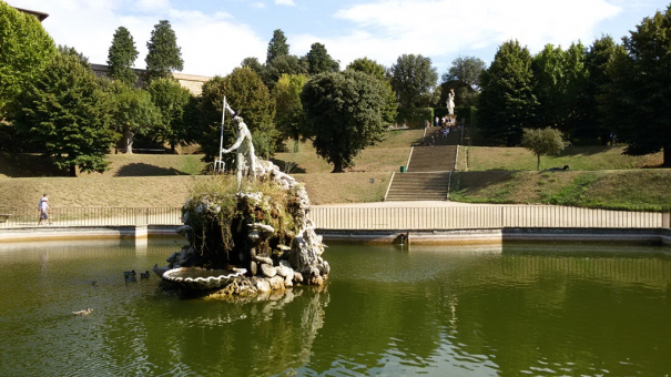 Палаццо Питти… остается позади)) А впереди ландшафтный парк с чудаковатыми современными скульптурами вперемешку со старинными, и великолепный вид, который чем выше ты поднимаешься, тем красивее.