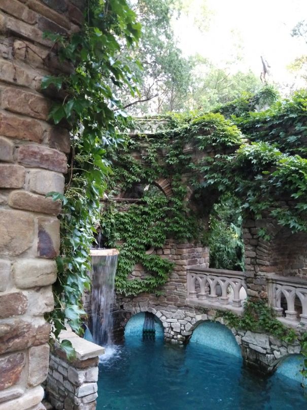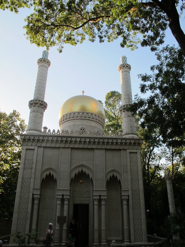 В нём воссозданы удивительные уголки разных стран и эпох — античность, Египет, классицизм, готика, средневековье, японский уголок, православие, дом Кавказа, дом Востока, кельтский акведук.