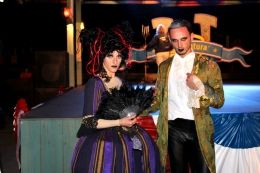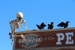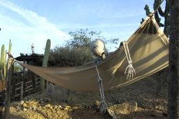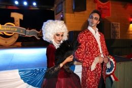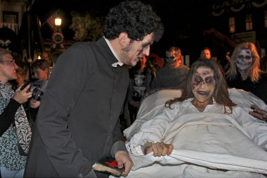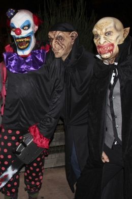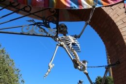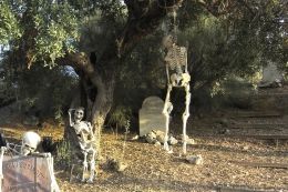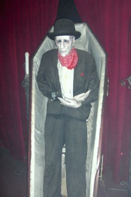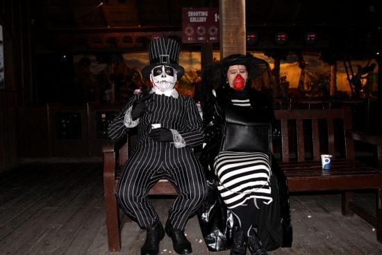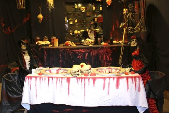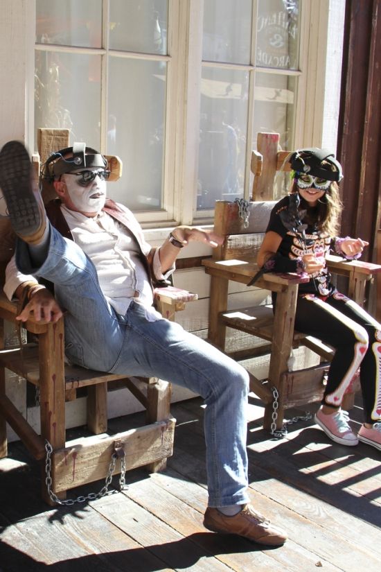 Конечно же, пофотографироваться. Например, на электрическом стуле или стать обедом для семьи скелетов, просунув головы в блюда.)