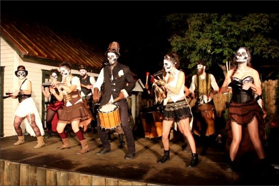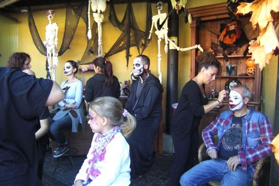 Гримируются семьями, а потом то и дело встречаются вот такие весёлые семейки.)