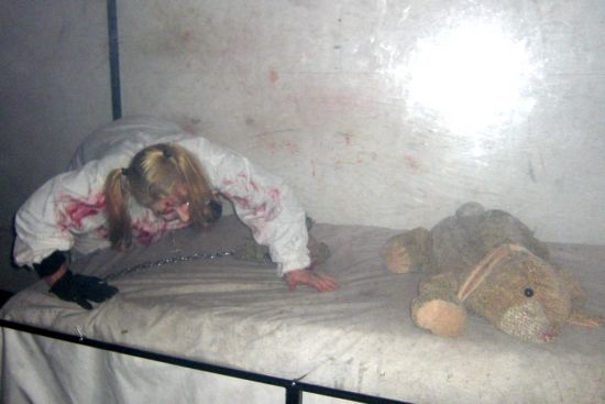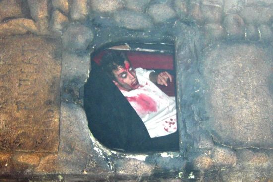 Но увы. Хороших фотографов из нас так и не получилось.) И там, и там нужно не задерживаясь, проходить весь маршрут, во время которого кто-то оживает, кто-то несётся на тебя с бензопилой, кто-то выскакивает… кругом визг, писк, а вот всё это сфотографировать...) Изображения просто смазаны. К тому же, вся эта нечисть не любит фотографироваться. Пытались остановиться и дождаться — так не вылезают!