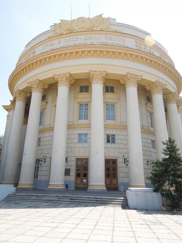И вот мы у цели. Здание с колоннами и с куполом, увенчанное статуей, с двумя фонарями по обе стороны, похожее на театр.