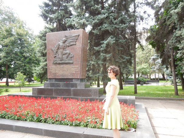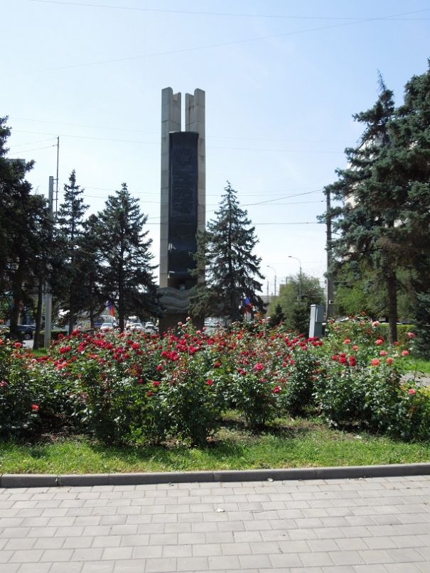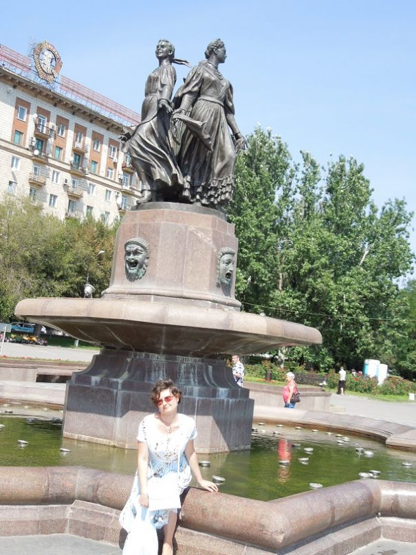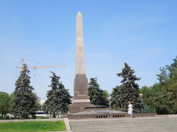 Слева от тополя каменная стела — дань памяти троим погибшим защитникам Сталинграда. Притом все трое разных национальностей: Каменщиков — русский, Фаттяхутдинов — татарин и Ибаррури — испанец. Но все они выросли на русской земле и погибли, её защищая. Нет здесь русских и нерусских — есть советские солдаты! Кстати, с матерью Рубена Ибаррури, известной как Пассионария Долорес, меня с институтских времён связывает непростая история. Как-то на контрольной по испанскому я по рассеянности подписалась её именем, и из-за этого меня вплоть до самого окончания курса называли Долорес. После такого я сочла просто неприличным пройти мимо этой стеллы, не сфотографировавшись.