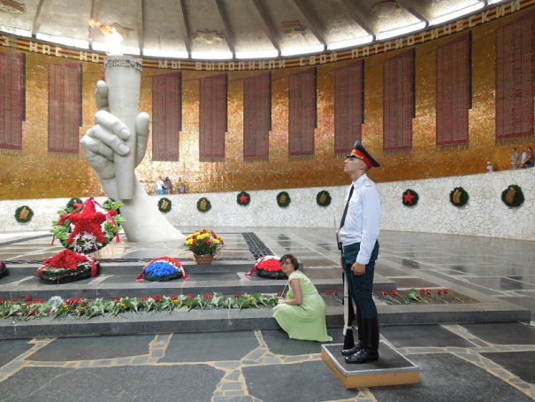 Но насмотреться на неё мы в этот раз не успели. Нас быстренько распределили по автобусам и повезли к площади Павших борцов. С мамой, кстати, пришлось временно расстаться, поскольку я взяла дополнительную экскурсию – в музей-панораму «Сталинградская битва». Мама же предпочла после основной программы свободный осмотр городских достопримечательностей.