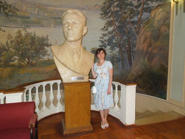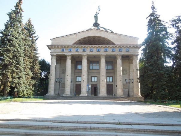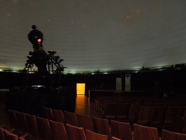Внутри планетарий оказался не менее интересным. Кроме паркетных полов и стен, белых лестниц с затейливыми перилами и розовых колонн убранство украшают лунные и земные панорамы, бюсты космонавтов и учёных-астрономов, глобус Луны.