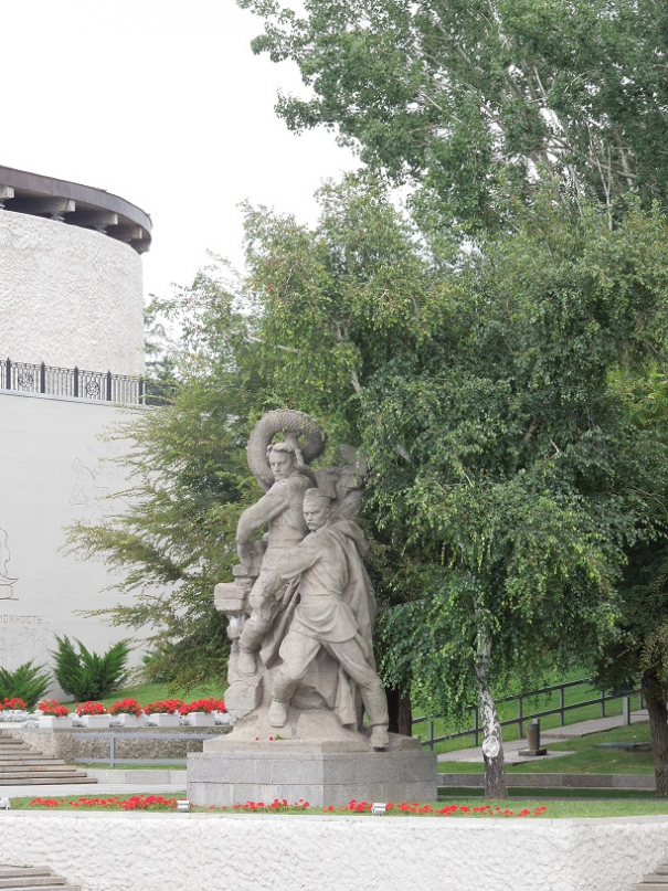 Какой ценой досталась эта Победа, мы увидели на Площади Скорби. Мать держит на руках убитого солдата. Лицо его прикрыто знаменем — так, чтобы каждая из матерей погибших знала — это памятник ей и её сыну. Хоть монумент и окружён водой, можно было бы по камешкам к нему подобраться, встать рядом, попросить кого-нибудь запечатлеть. Но что-то меня удержало. Возможно, суеверный страх за будущих детей.