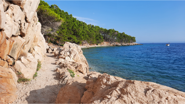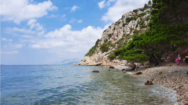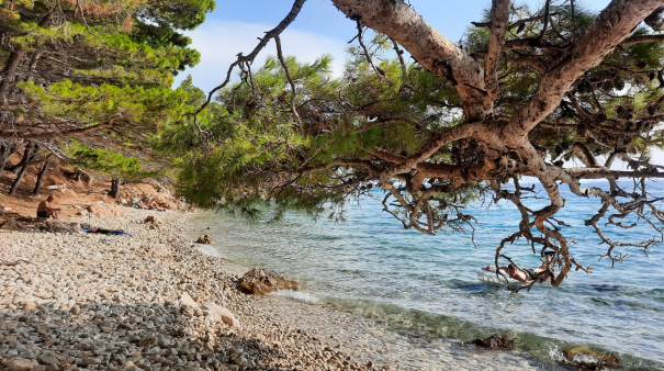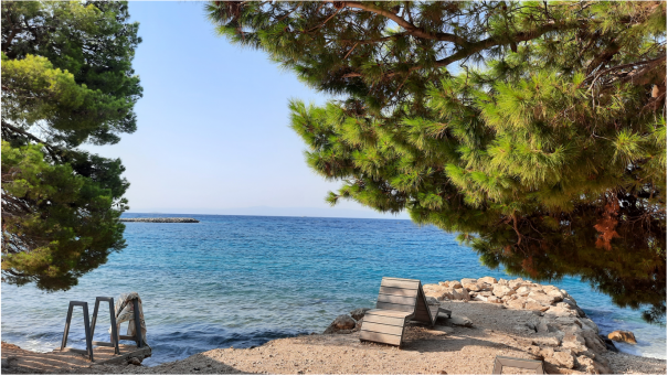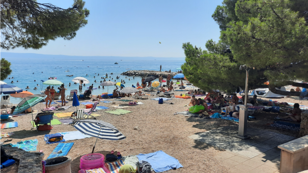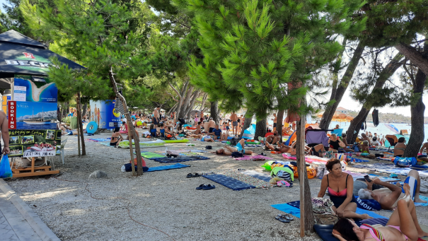 И да, все тут стараются спрятаться в тень от елей. Шезлонгов с зонтами мало. В разы меньше, чем в Черногории. И когда слышишь, что европейцы очень любят отдыхать в Хорватии, ожидаешь тут каких-то шикарных условий