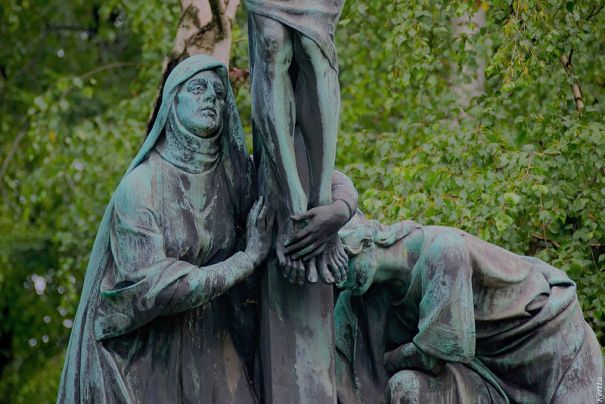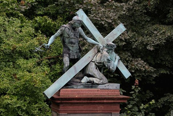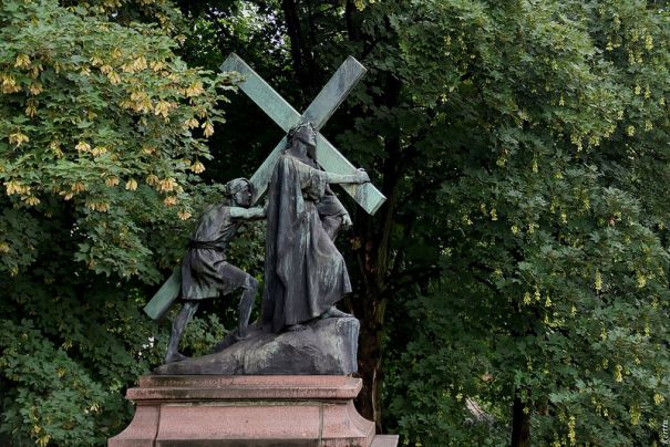 В каждом костеле (католическом храме, как его называют в Польше и там, где сильна польская диаспора) имеется так называемый крестный путь, состоящий из 14 стояний. Стояния представляют собой определенные сцены из последнего дня жизни Христа. В костеле это могут быть скульптуры, видела я и витражи, и картины на стенах, и рельефы, могут быть и скульптуры вокруг костела. Во время богослужение в Великую Пятницу, если я правильно помню, верующие обходят все стояния, молятся возле каждой из них. При этом в каждом костеле, есть свой крестный путь и в Ватикане. И конечно идут крестным путем и там, под предводительством Папы, в прошлом году смотрела трансляцию.