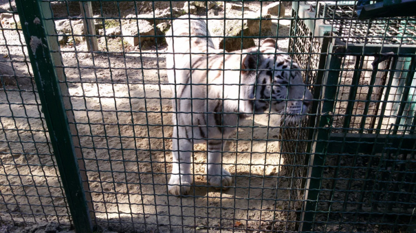 Мое внимание привлекло соседство в одном вольере пятнистого красавца с пантерой. Фотографии с ними получились размытыми, так как эти кисули постоянно дефилировали вдоль сетки, не останавливаясь попозировать на камеру. Так что снимала на видео (чуток ниже). Мне стало любопытно откуда такая совместимость. Оказалось, что пантер, как самостоятельного вида, не существует. Это генетическая мутация. И пантерами называют темноокрашенных особей таких видов больших кошек, как леопарды, ягуары. Данная мутация часто распространена в тех популяциях, которые живут в плотных лесах. Это облегчает выживание, так как темный окрас животного при слабом освещении менее заметен.