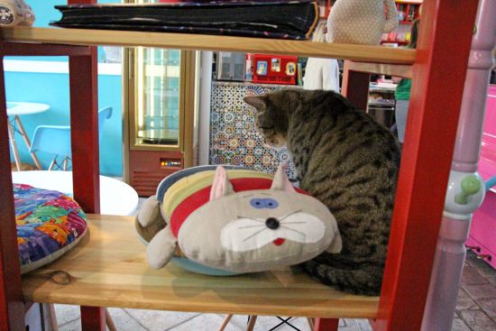 Если честно, то в этом кафе мы и зависли.) К тому же, оно нам сразу напомнило музей кошек в Льорет де Мар своим интерьером.