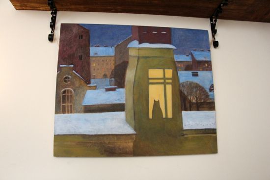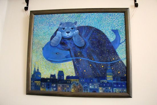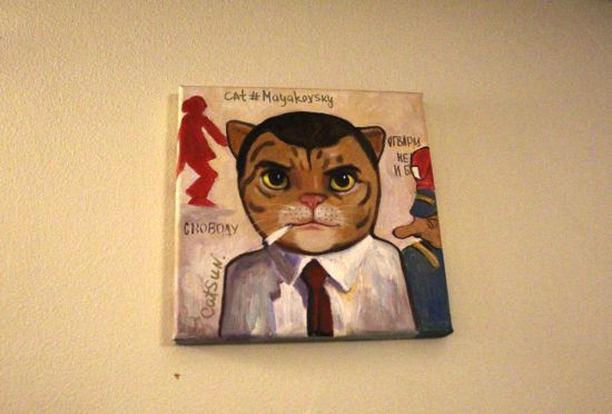 Картины на стенах. Есть даже Маяковский, Пушкин, Ахматова…)