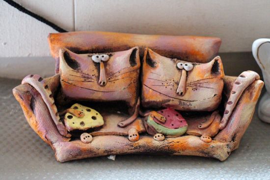 А вот и наши.) В нижнем ряду три котика от мастеров по керамике в Салоу.) Каждого котика они делают в одном экземпляре.
