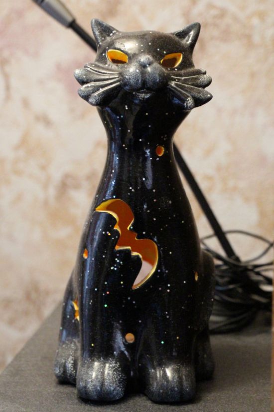 Мы своих-то котов, которые стоят на полках — и то не раз роняли. Хорошо, что не разбились.