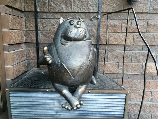 А вот такой кот Вася находится совсем недалеко от метро Пролетарская. Там живут родные одного из нас. И каждый раз, прилетая, забывали его сфотографировать. Но на этот раз вспомнили.)