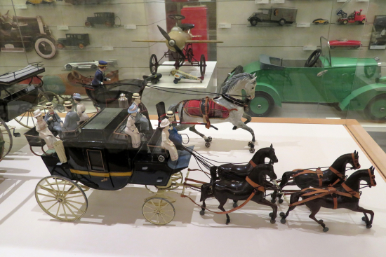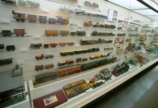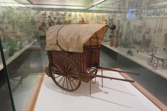Начнём с транспортных средств: машинки, повозки, паровозики… В музее есть и огромная железная дорога, очень красивая, занимающая весь зал.