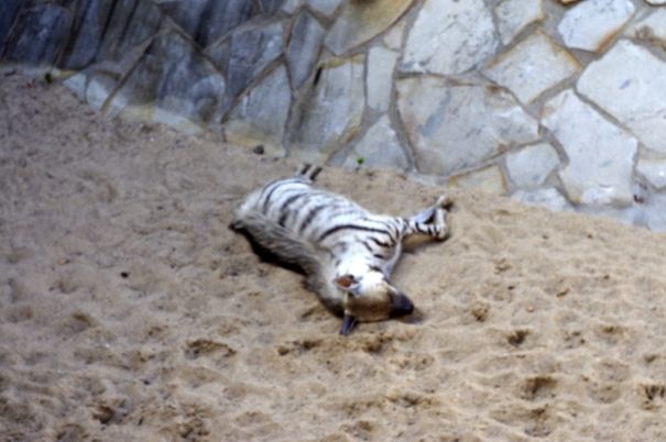 Многие животинки или спрятались от жары или валяются полудохлыми, как эта гиена.
