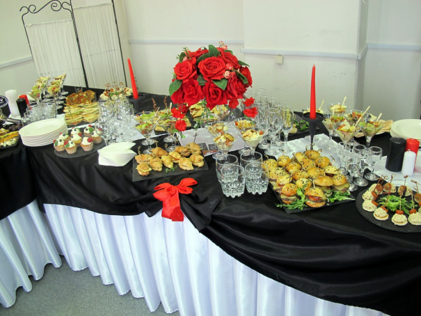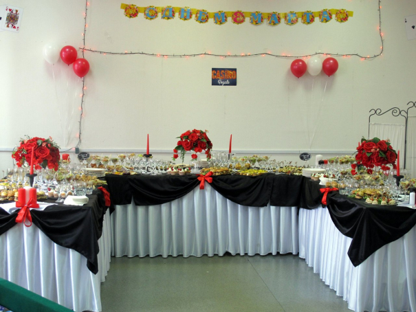 Ведущий, азартные игры, конкурсы, шикарный фуршетный стол. И конечно, много цветов))).