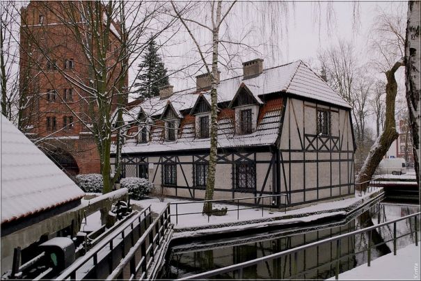 Эти белые дома с черными квадратами — фишка Поморья в Польше, здесь таких вот полно, потом еще покажу фотографии, если доберусь.