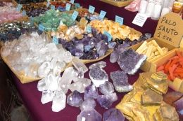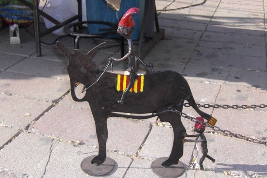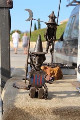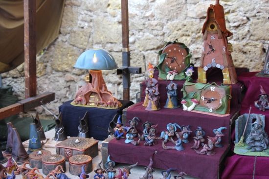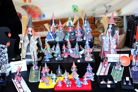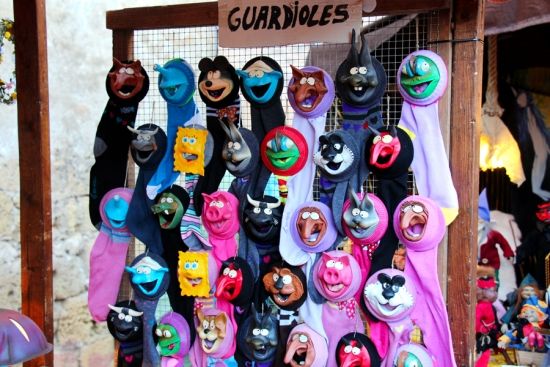 Что только не продают! И какие-то крема (может, для полётов на метле?), и амулеты и травы, всех сортов ладан, минералы (в Каталонии добывается очень много минералов и камней), конечно же, разные сувениры (все ручной работы), украшения… но нам больше всего нравятся изделия мастеров игрушек. Все игрушки — ручная работа. Увеличьте фотографии, разглядите их.)